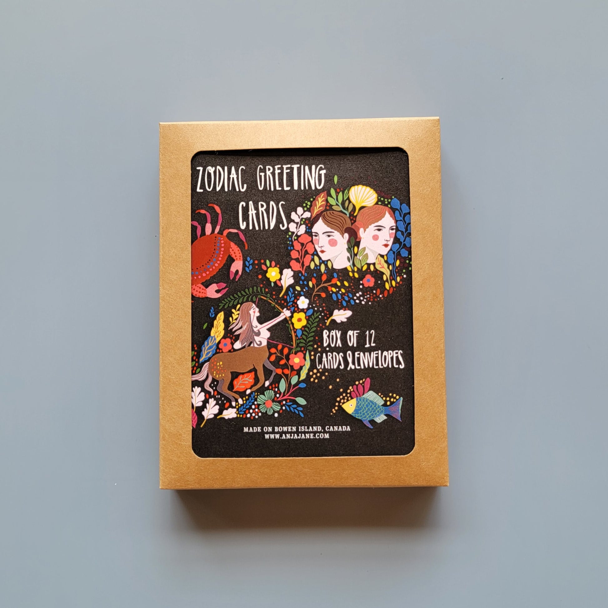 A set of 12 zodiac greeting cards, perfect for birthdays and astrology lovers.